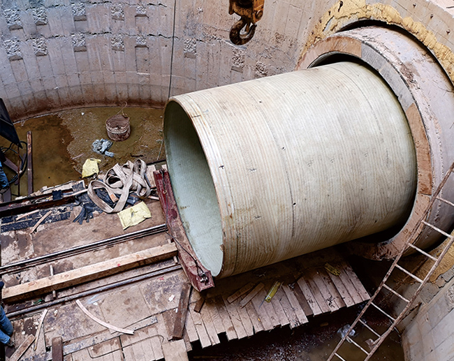 拥有国际领先水平的玻璃纤维增强塑料夹砂管(连续缠绕工艺)生产线 5条,年产管道6万吨。