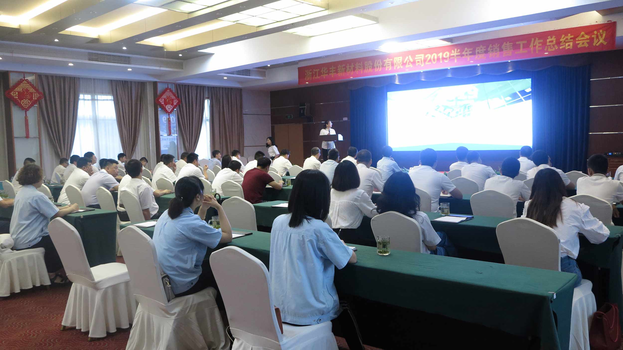 2019年7月13日,华丰新材2019半年度销售工作总结会议隆重举行。公司董事,营销中心各部门部长及全体营销人员共50余人参加了此次会议。