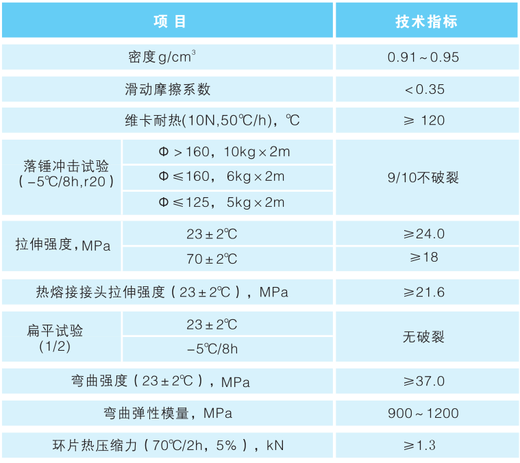 质轻、光滑、磨擦阻力小,可热熔焊对接。