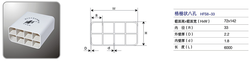 “丰”牌PVC八孔栅格管适用于通信光缆的穿导、隔离及?;?,广泛应用于光纤通讯、有线电视、多媒体传输等工程。